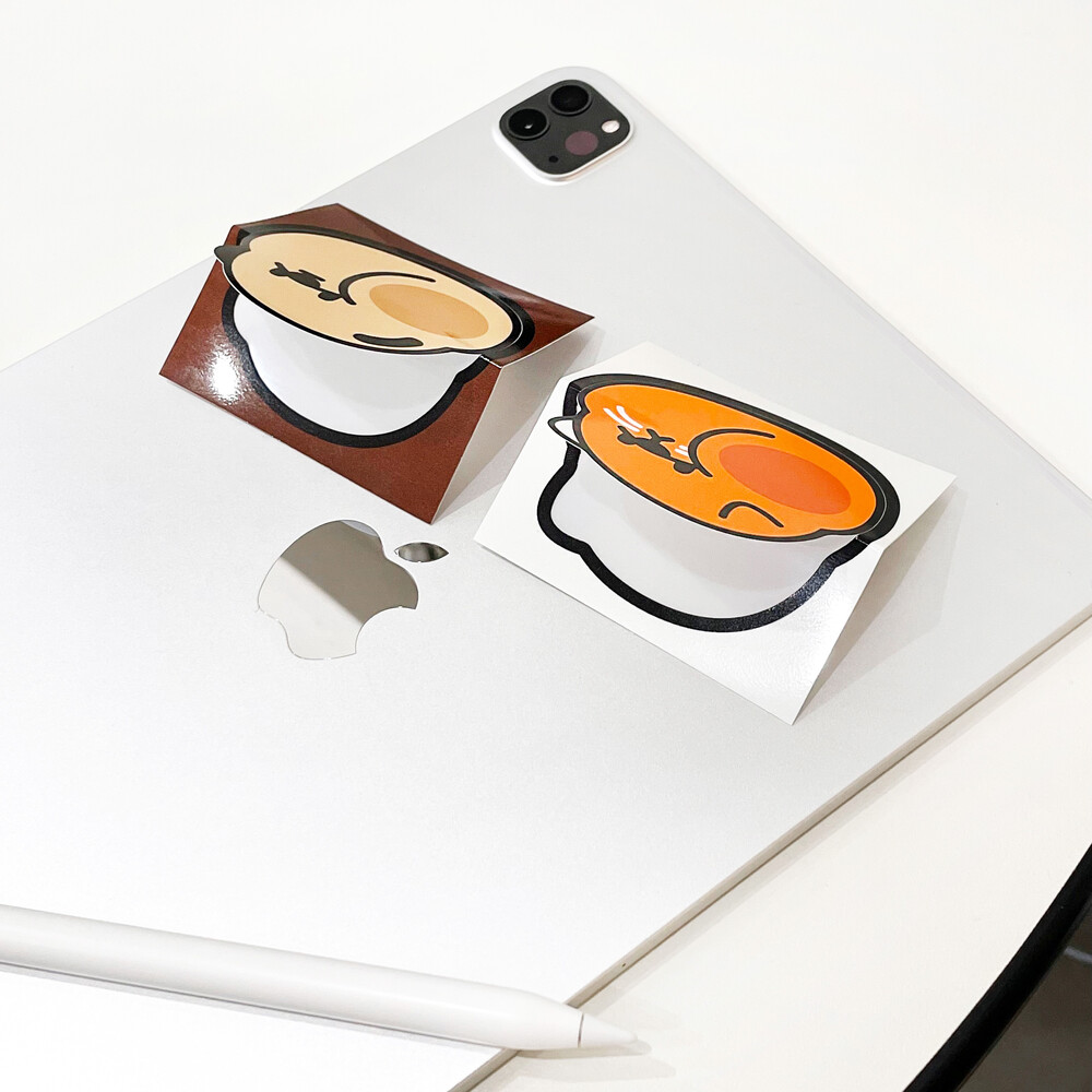 노트북에 커스터마이징한 모래 스몰사이즈 스티커와 로고스티커